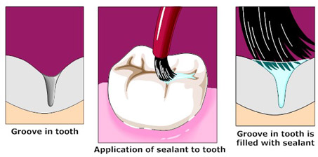 Applying dental sealants is a relatively fast and pain-free process. First the dentist will clean the child’s tooth and apply a sticky solution so that the sealant can bind tightly to the tooth. Next, the dentist will coat the tooth with a sealant and use a light to harden it. The drying process will take under a minute and then the tooth is sealed!  To get a better idea of the process, check out What are Dental Sealants?